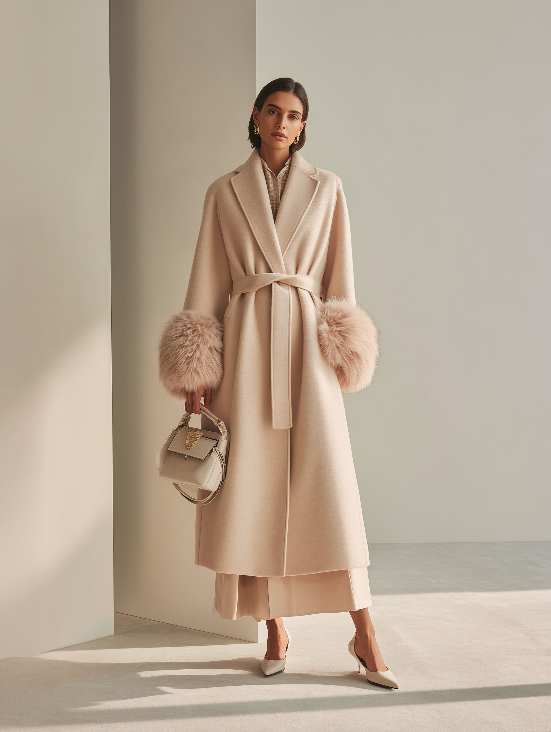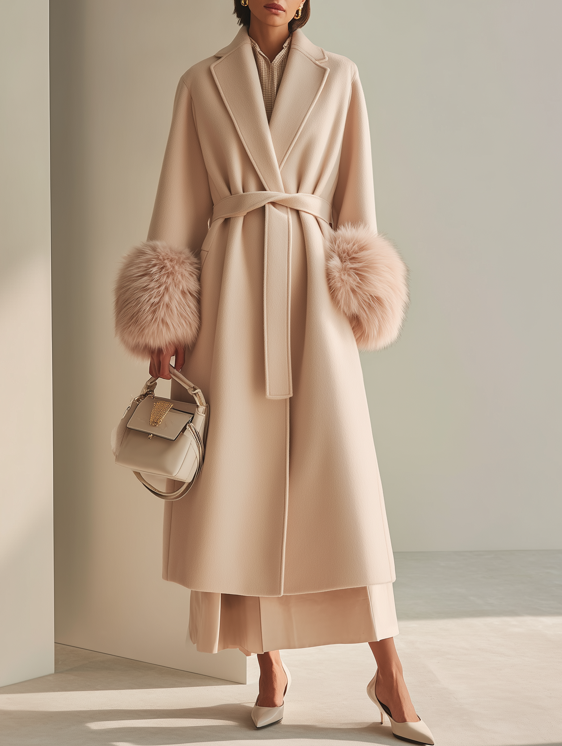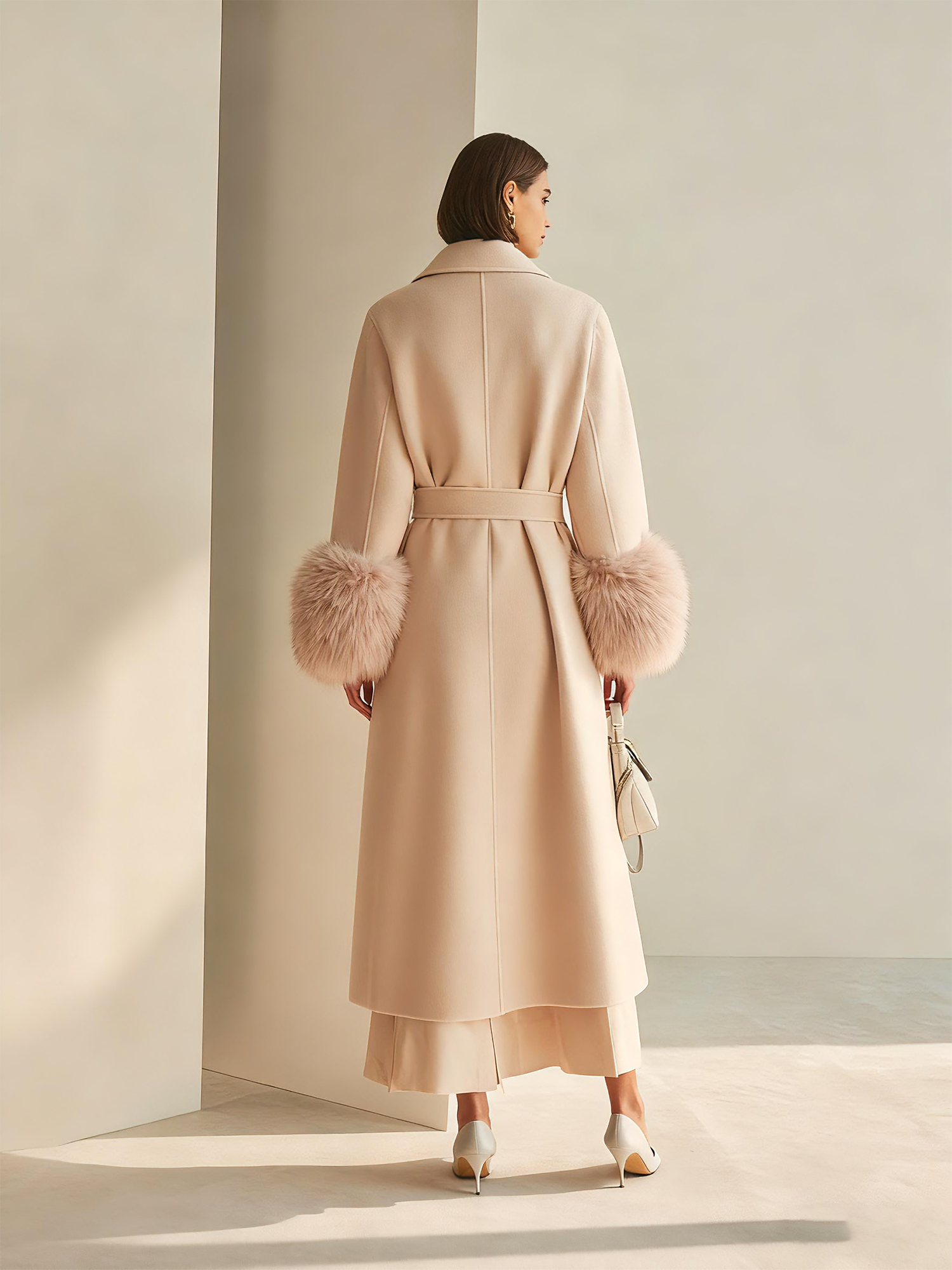 Women's Double-faced Wool Long Coat With Plush Cuffs And A Fitted Waist, Elegant And Suitable For Commuting.