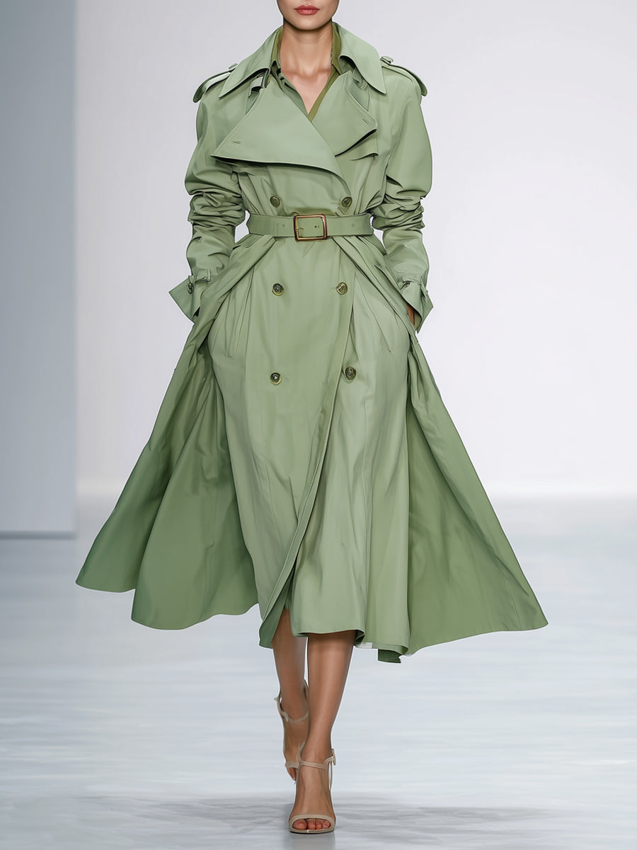 Women's Fashionable Autumn And Winter Sage Green Loose Belt Windbreaker Jacket
