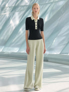 This black short-sleeve T‑shirt and light green trousers suit is a versatile staple that blends comfort with contemporary styling. The contrasting tones create a fresh, wearable ensemble that transitions easily from weekend errands to casual workplace settings. Minimal, easy to accessorize, and effortless to wear—it's a go-to set for building a modern, low-fuss wardrobe.