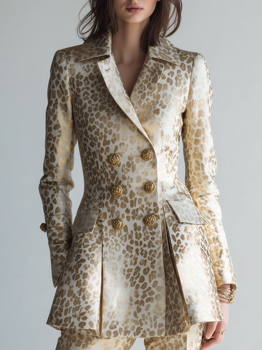 Women's Leopard Print Large Lapel Fashionable Waist Hem Slit Suit Jacket