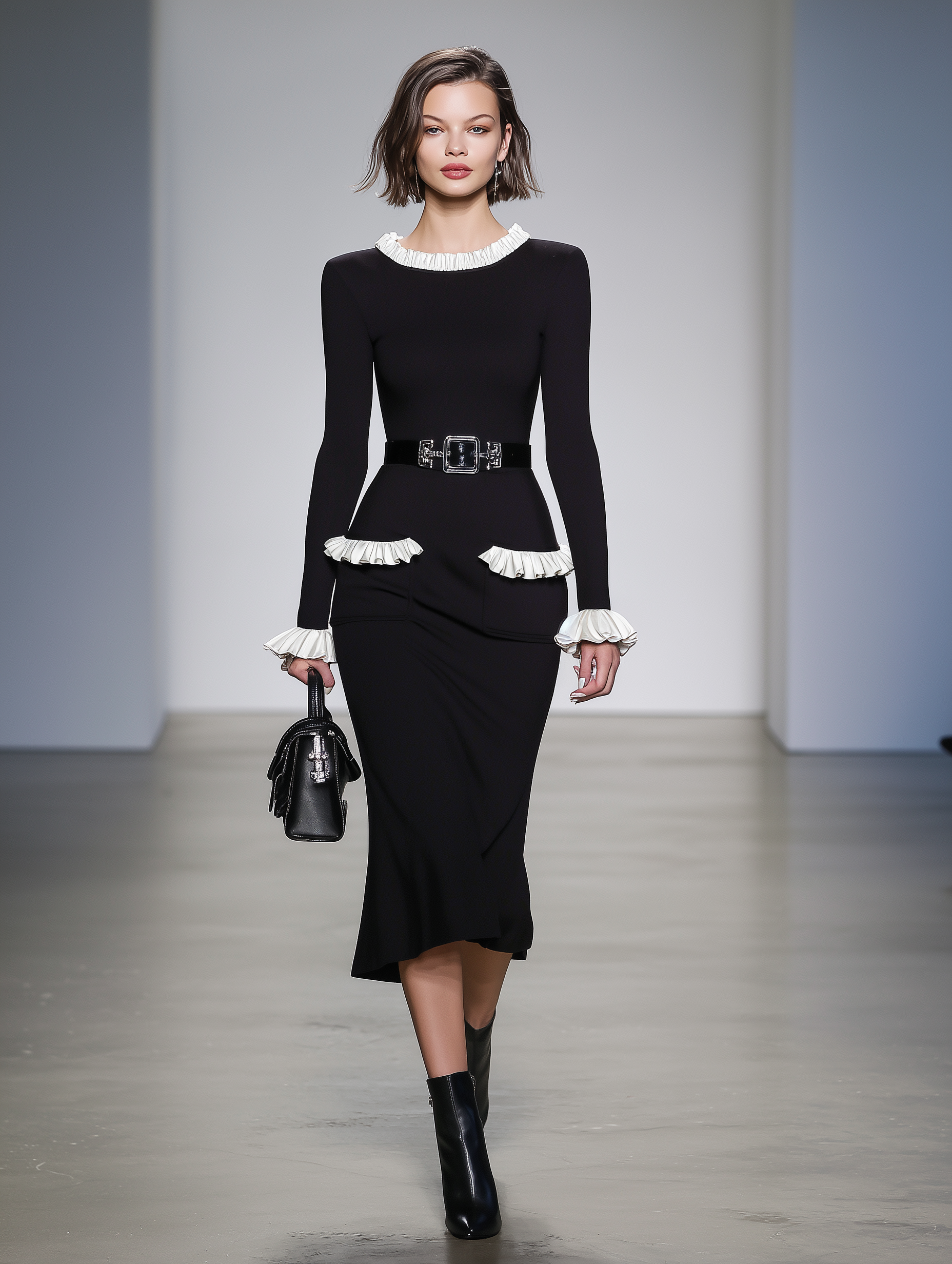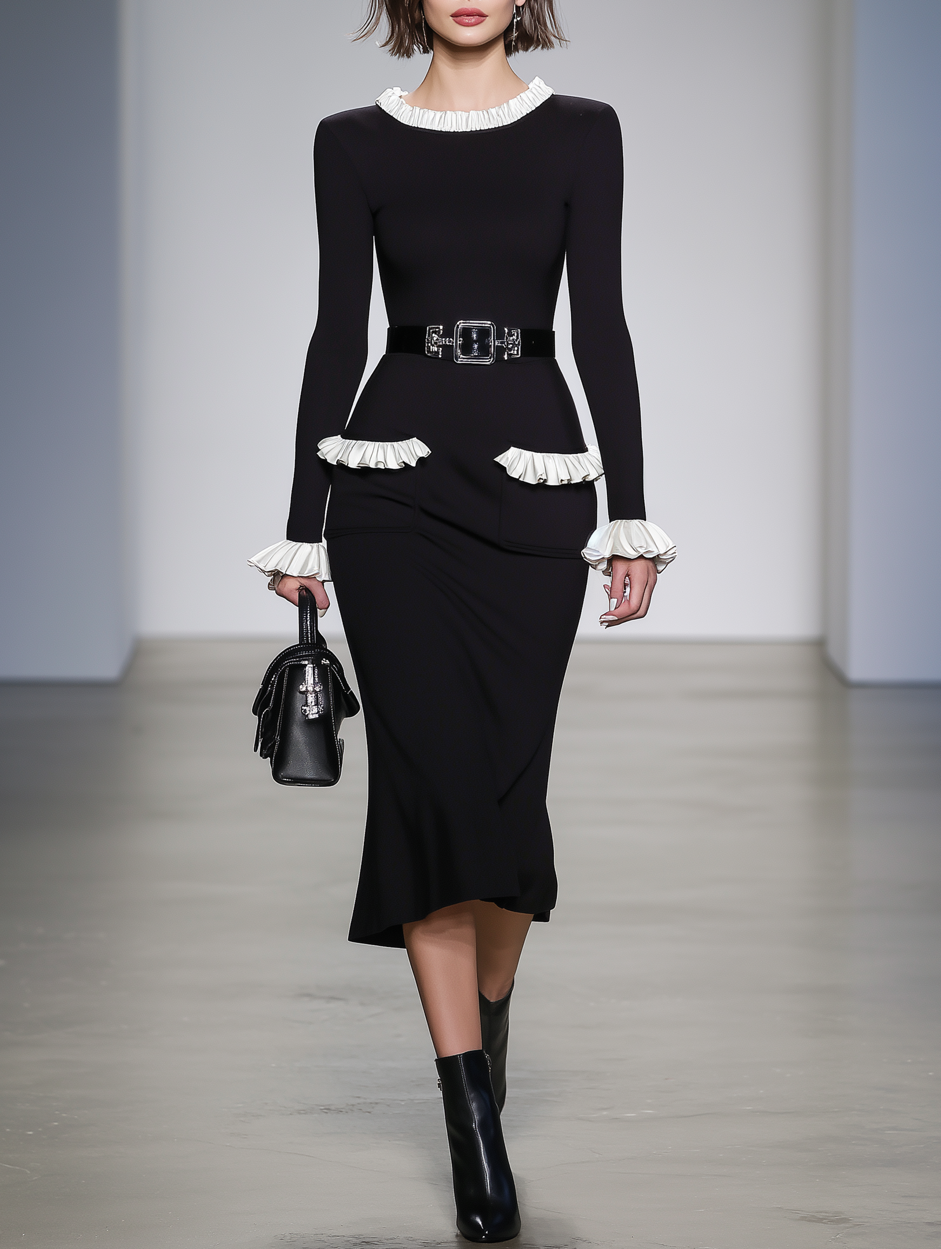 - Color-blocked Design: The dress sports a striking black and white color scheme that draws attention while maintaining a classic aesthetic.
