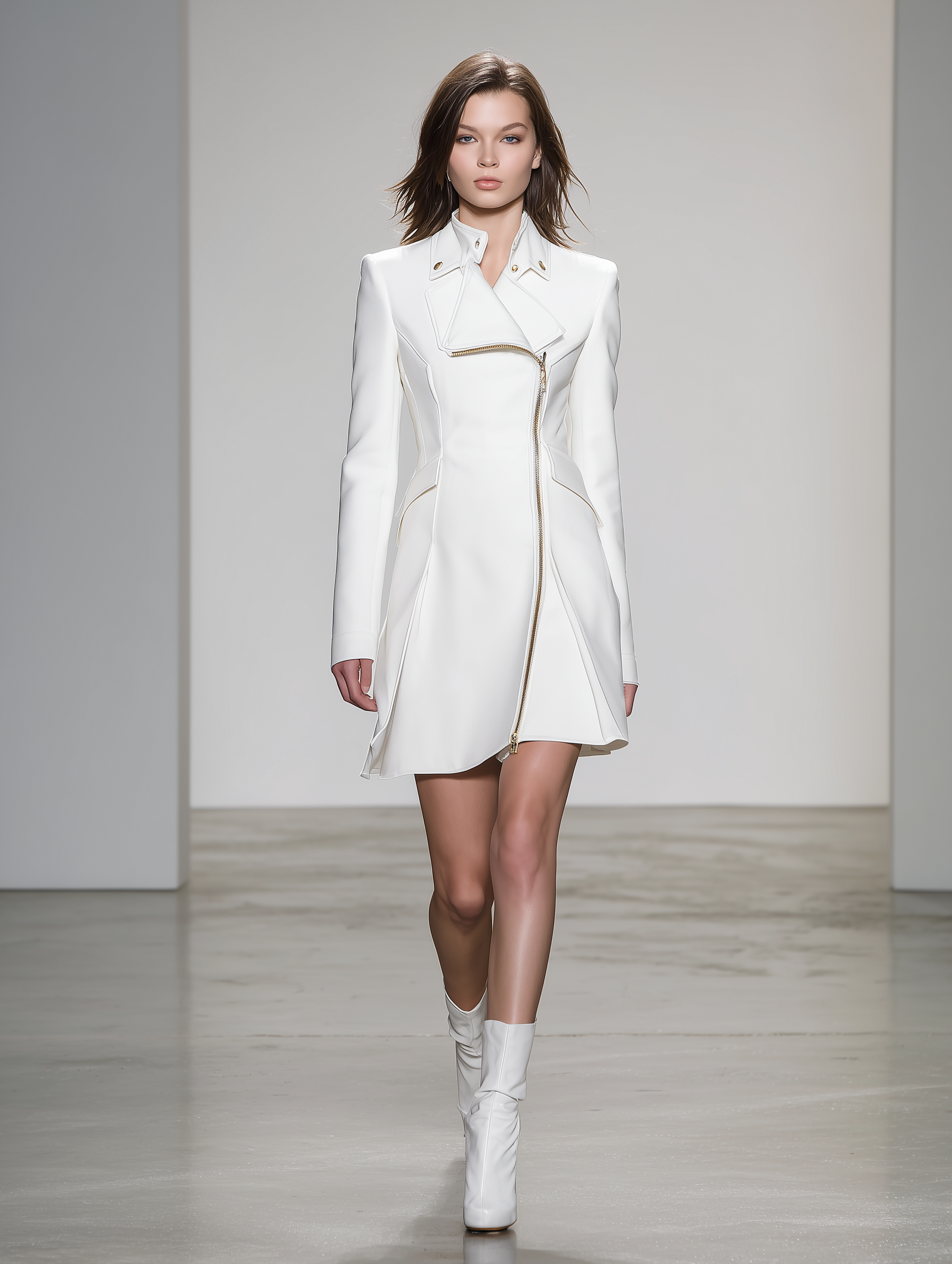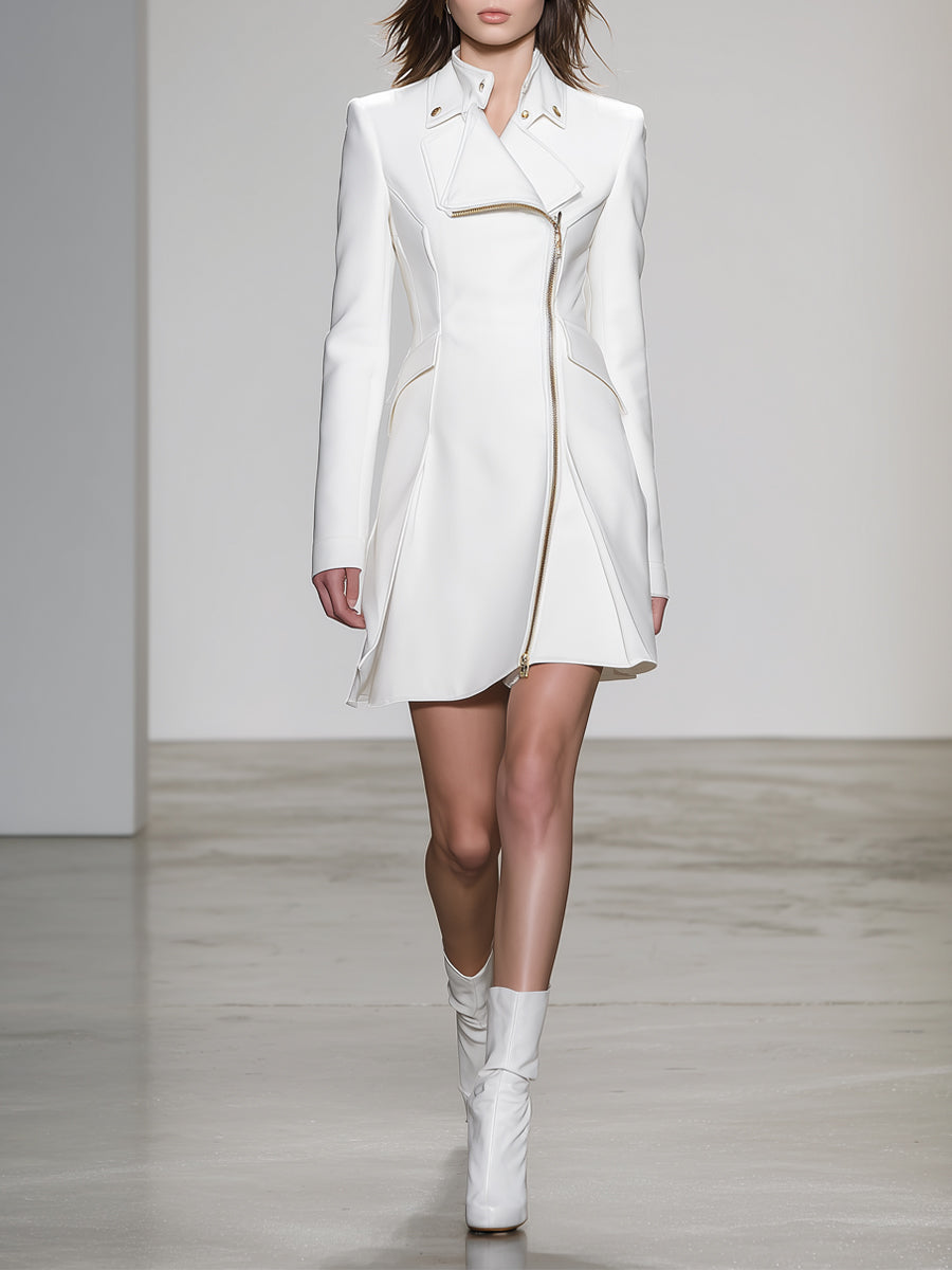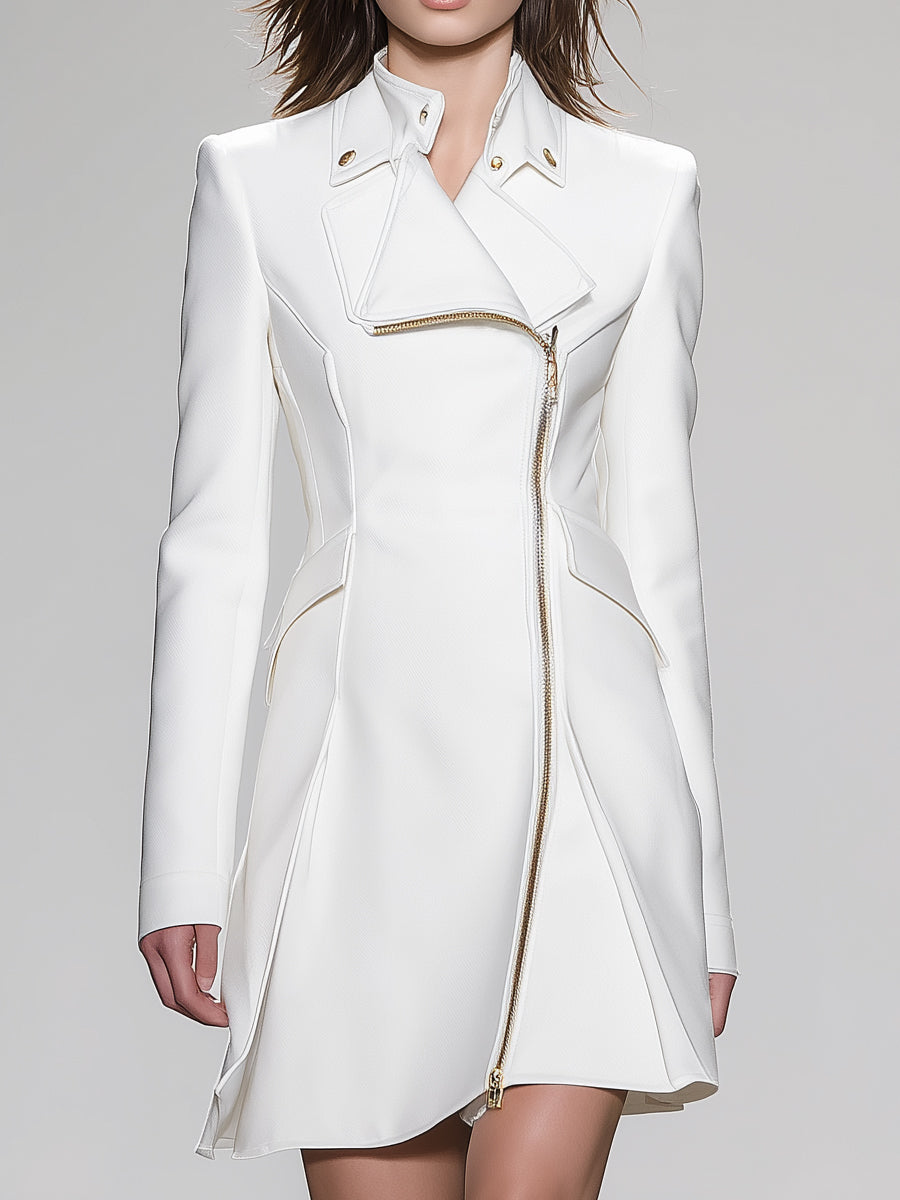 Women's Fashionable Casual Mid-length Jacket Collar Ivory Coat