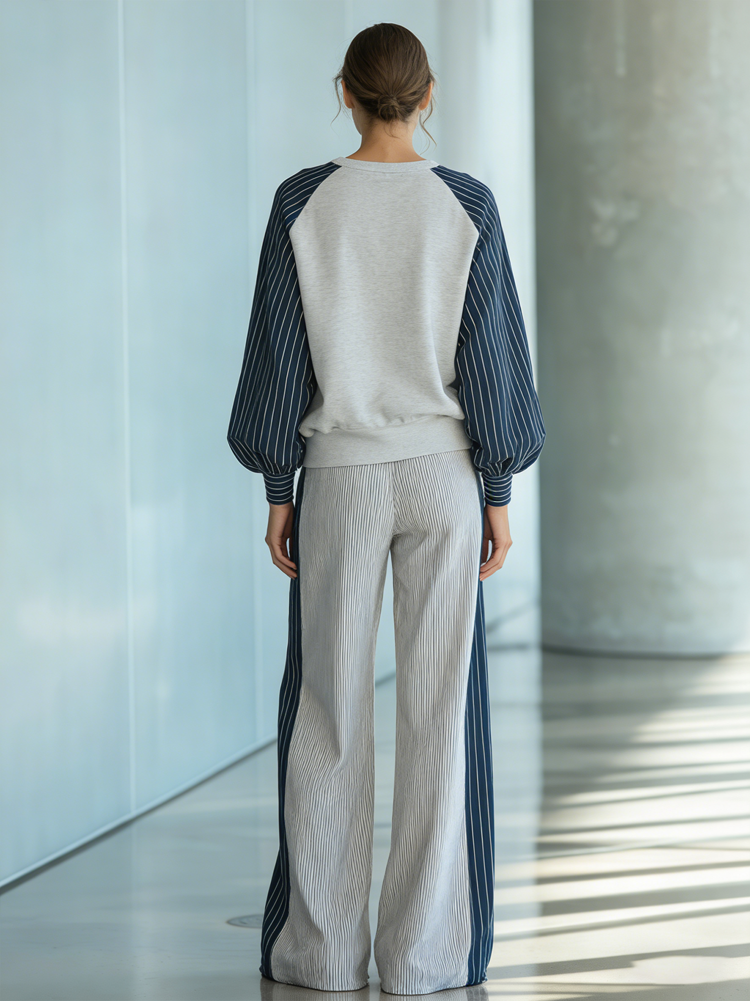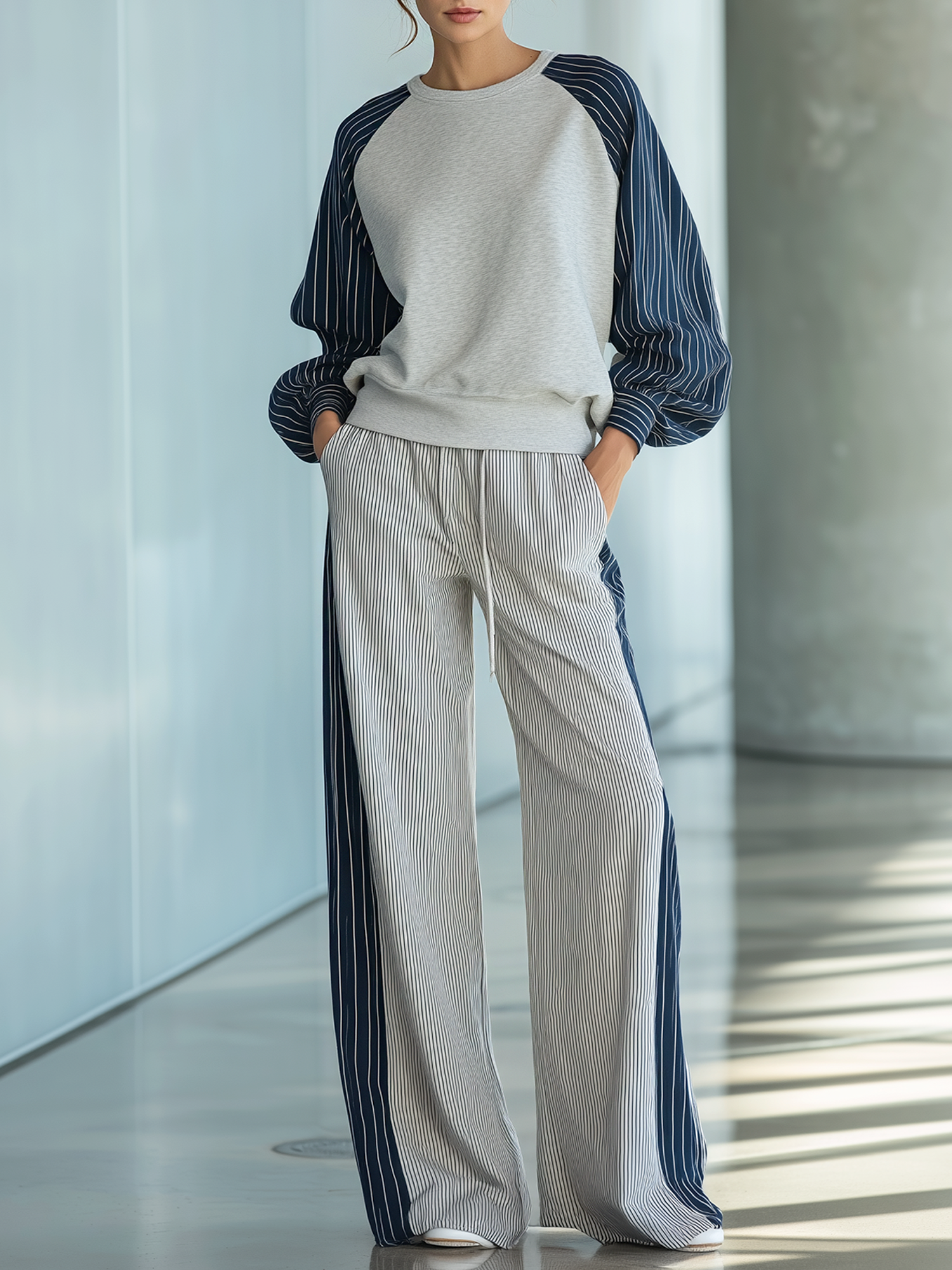 The Women's Lightweight Casual Color-block Striped Raglan Sleeve Top and Pants Set offers a perfect blend of comfort and style. Featuring a chic color-block design, this set includes a top with raglan sleeves that provide a relaxed fit and matching pants with a streamlined silhouette. This outfit is perfect for those who love to stay stylish without compromising on comfort.