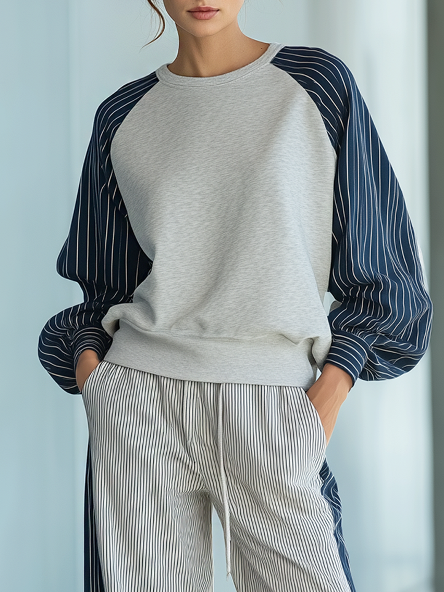 Women's Lightweight Casual Color-block Striped Raglan Sleeve Top And Pants Set