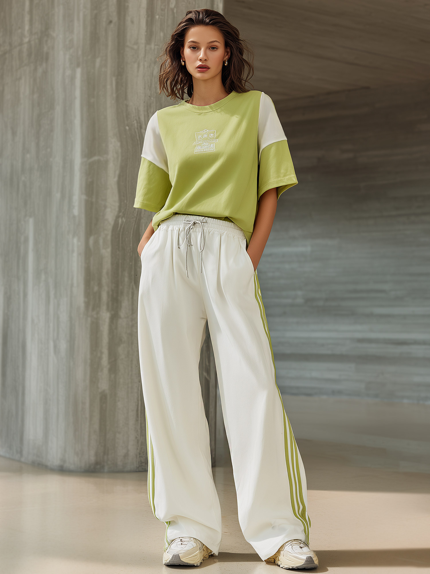 Overall, the Women's Stylish Casual Green Color-block T-shirt and White Pants Set is a versatile and fashionable choice for those looking to effortlessly combine comfort and style in their everyday wardrobe.