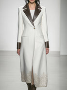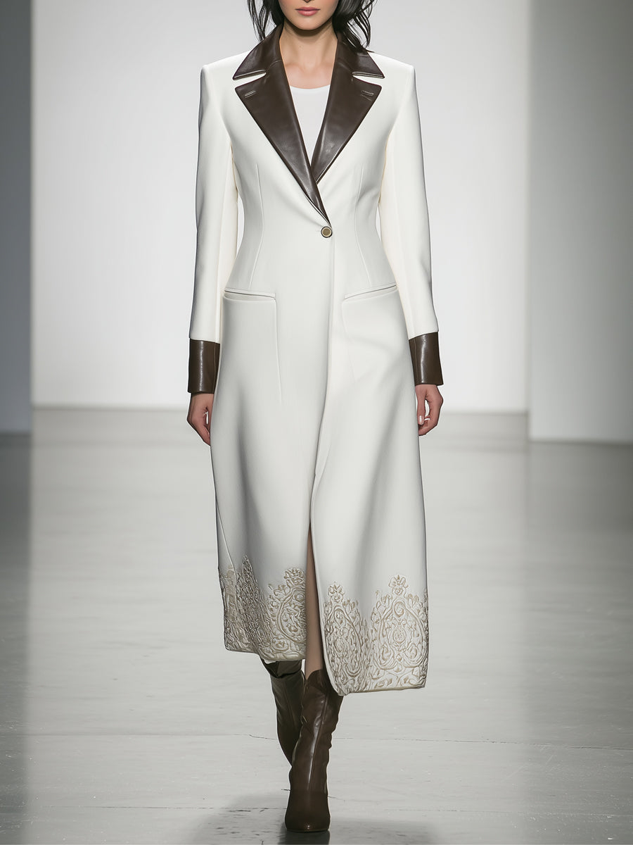 Women's Patchwork Leather Decoration Fashionable Embroidery Mid-length Vanilla White Loose Coat