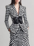 This Women’s Black And White Houndstooth Suit is a versatile and elegant addition to any woman's wardrobe. Its classic pattern and thoughtful design details enable it to stand out while remaining timeless and infinitely wearable. Embrace sophistication and elegance with this beautifully crafted suit.