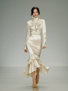 Explore the epitome of elegance with the Women's Champagne White Ruffled Decorated Top and Elegant Fishtail Maxi Skirt. This exquisite ensemble combines a chic, ruffled top with a graceful fishtail maxi skirt, creating a stunning silhouette perfect for any special occasion. The champagne white color enhances the garment's sophistication, adding a touch of luxury to your wardrobe.
