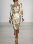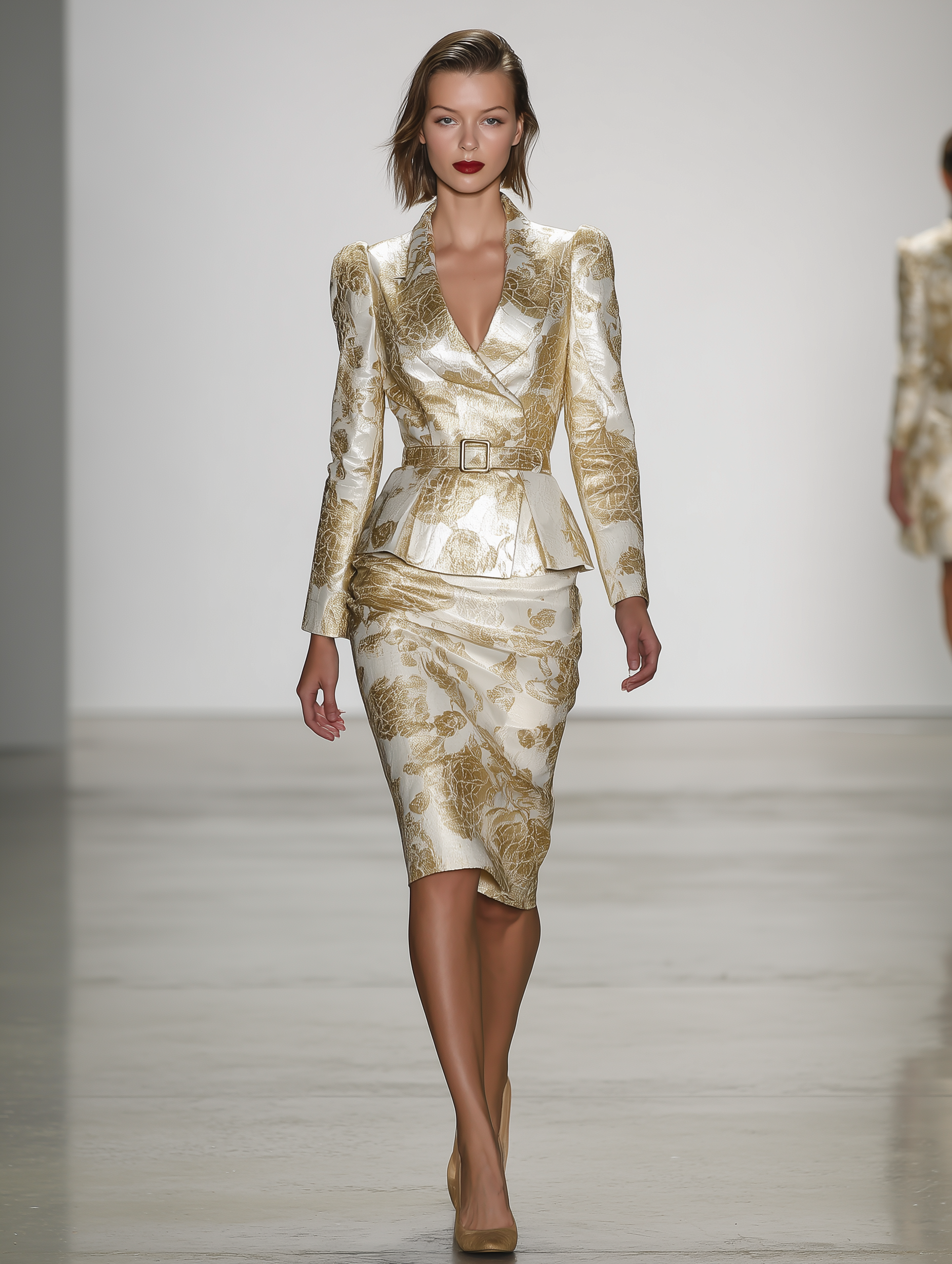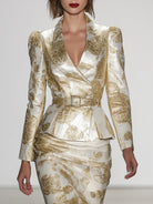 Women's Elegant Gold Jacquard One-Step Skirt Suit