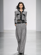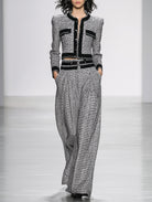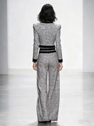 Our Women's Grey Tweed Pants with black piping trim exemplify style and elegance. With their high-quality fabric and refined design, these pants are a versatile wardrobe staple that seamlessly transitions from day to night, offering a chic foundation for an array of looks.