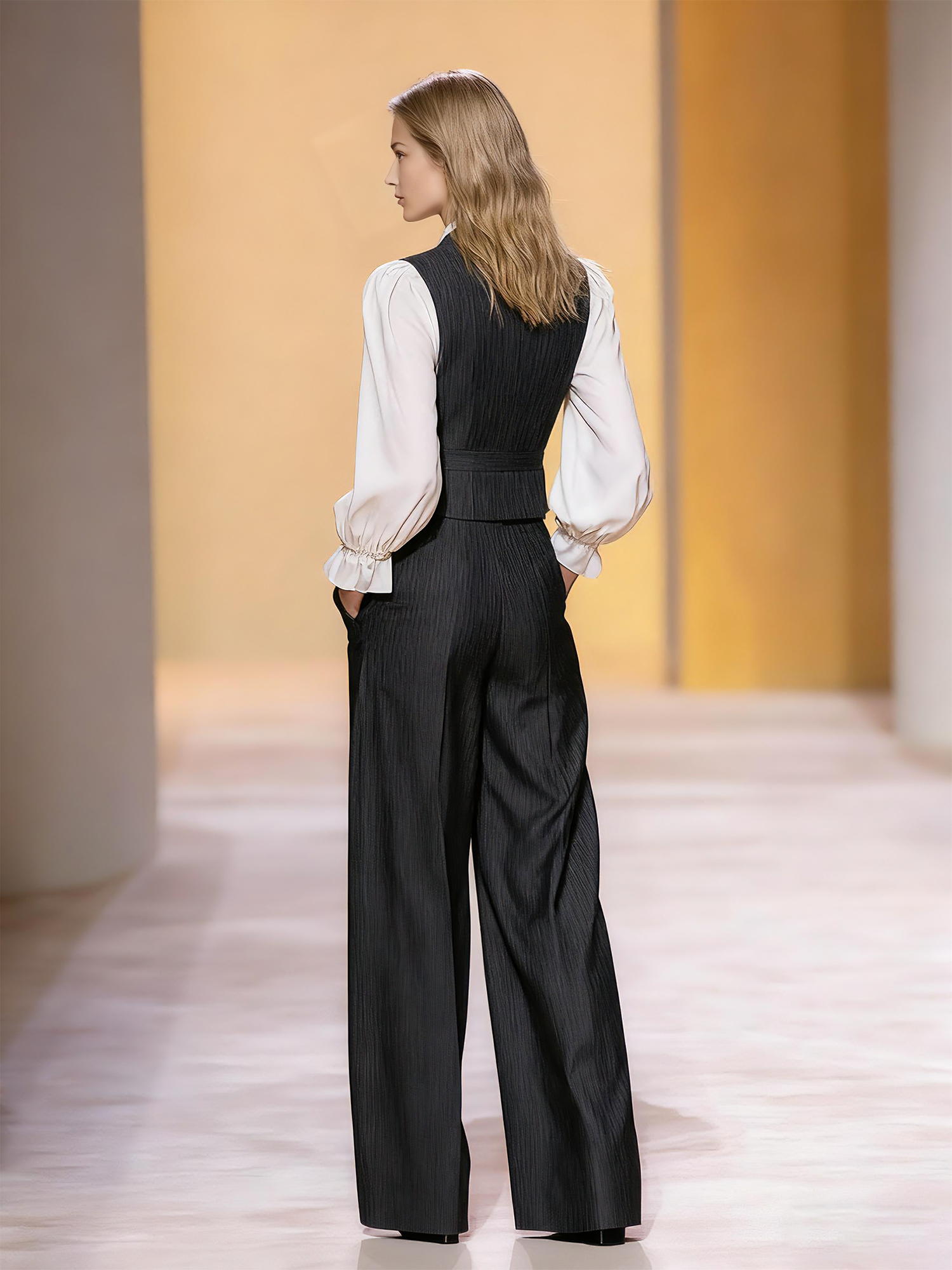 Women's OL Commuter Vest And Wide-Leg Pants Two-Piece Set
