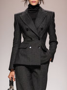 Women's Slim-fit Suit With Wide-leg Pants In Smoky Gray Fashionable Woolen Suit