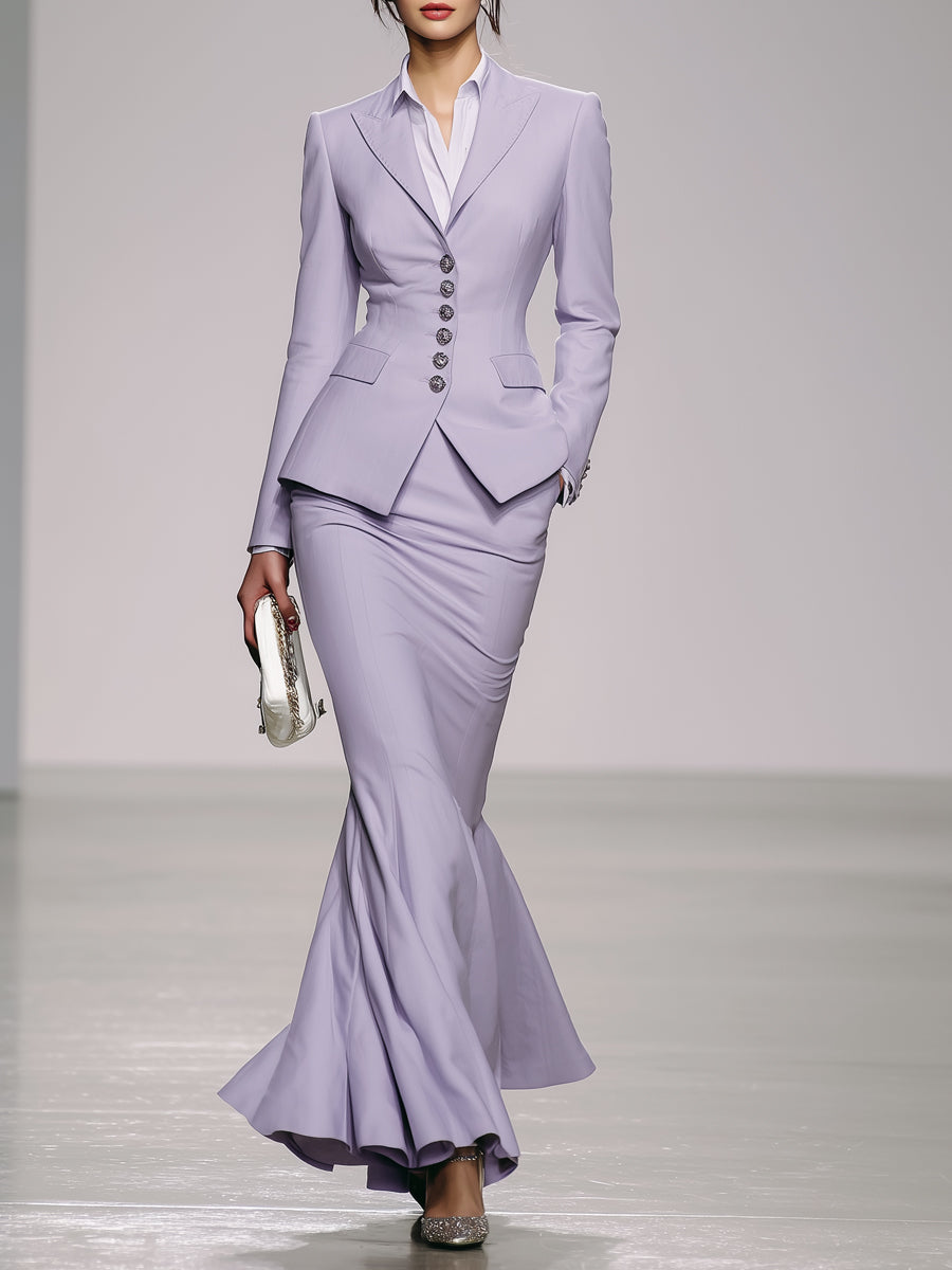 Women's Suit Fishtail Skirt Decorative Buttons Fashionable And Elegant Lavender Purple Suit