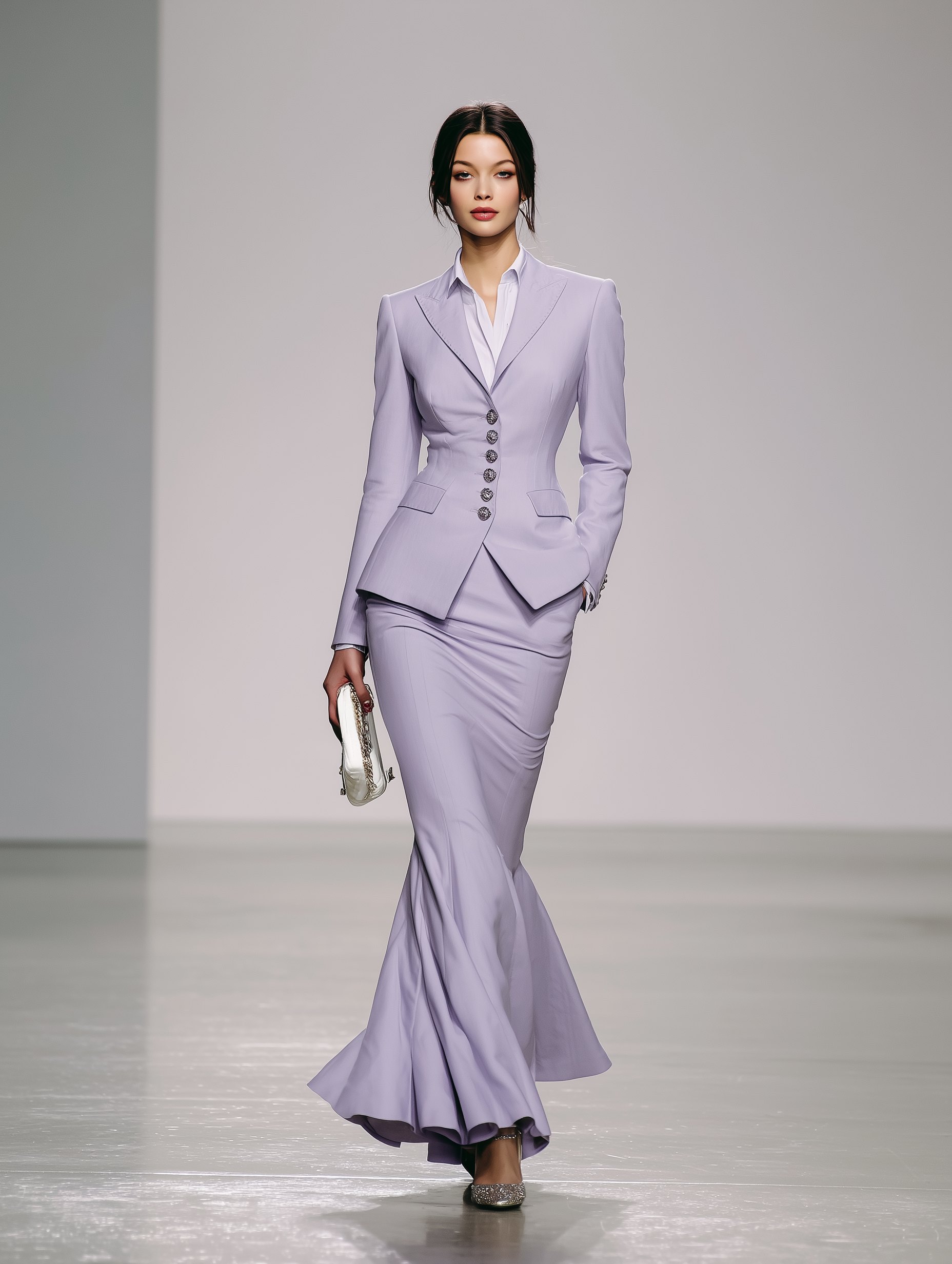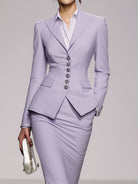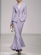 Unveil elegance and sophistication with our Women's Suit Fishtail Skirt. This fashionable and elegant suit ensemble is meticulously crafted in a soothing lavender purple hue that embodies both charm and modernity. The suit features stylish decorative buttons that add a touch of uniqueness to the ensemble, ensuring that you make a statement wherever you go.