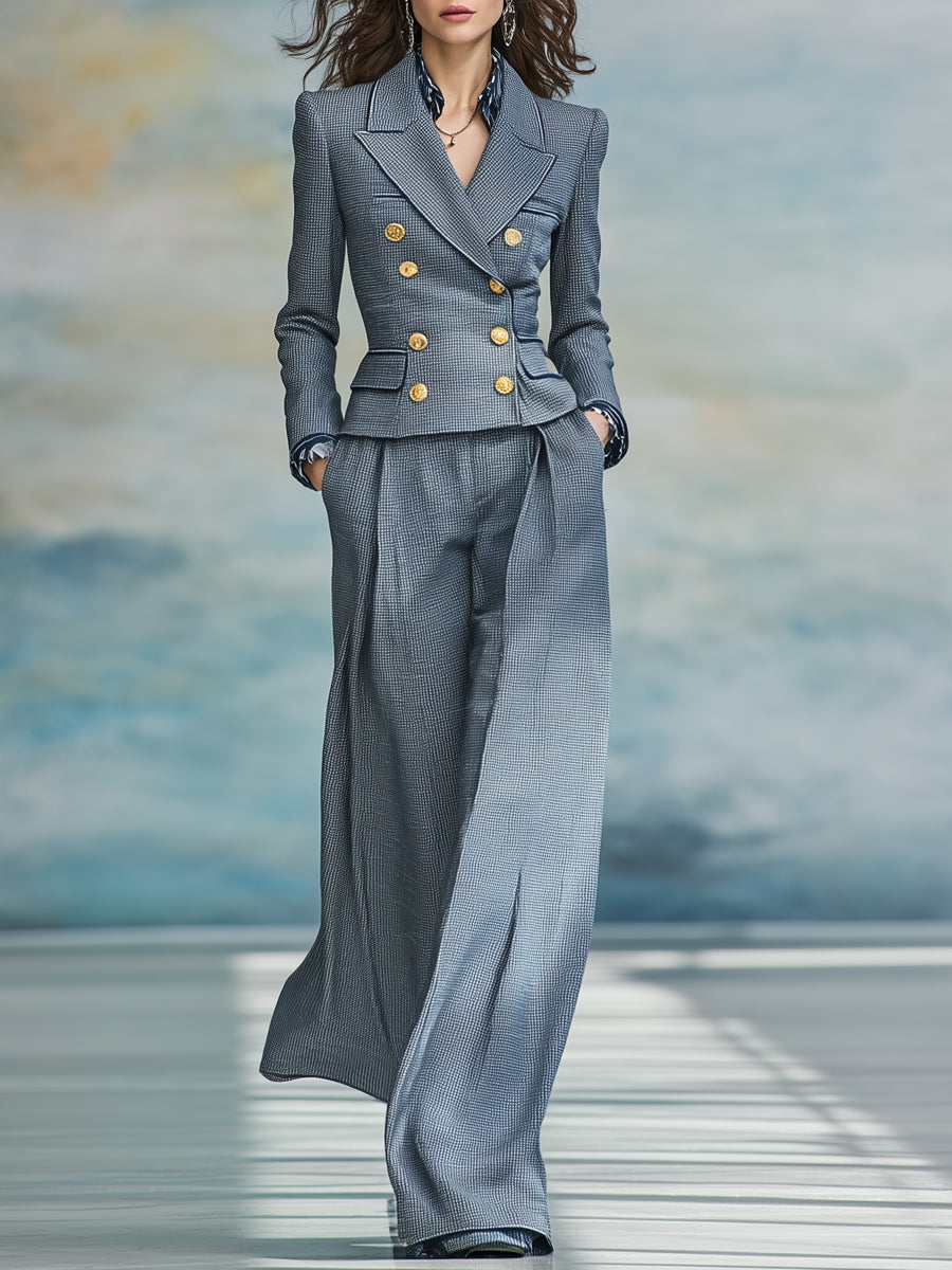 The Women's Waist-hugging Blue Plaid Short Suit with Wide-leg Pants is a versatile and fashionable addition to your closet. Perfect for both work and leisure, this suit combines elegance, comfort, and style effortlessly. Elevate your fashion game with this standout piece designed to make a lasting impression.