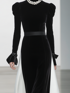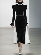 Elegant Color-Blocked Waist-Defining Mid-Length Velvet Dress For Women