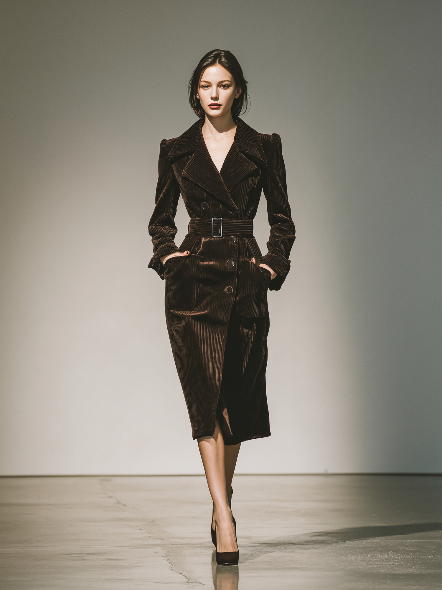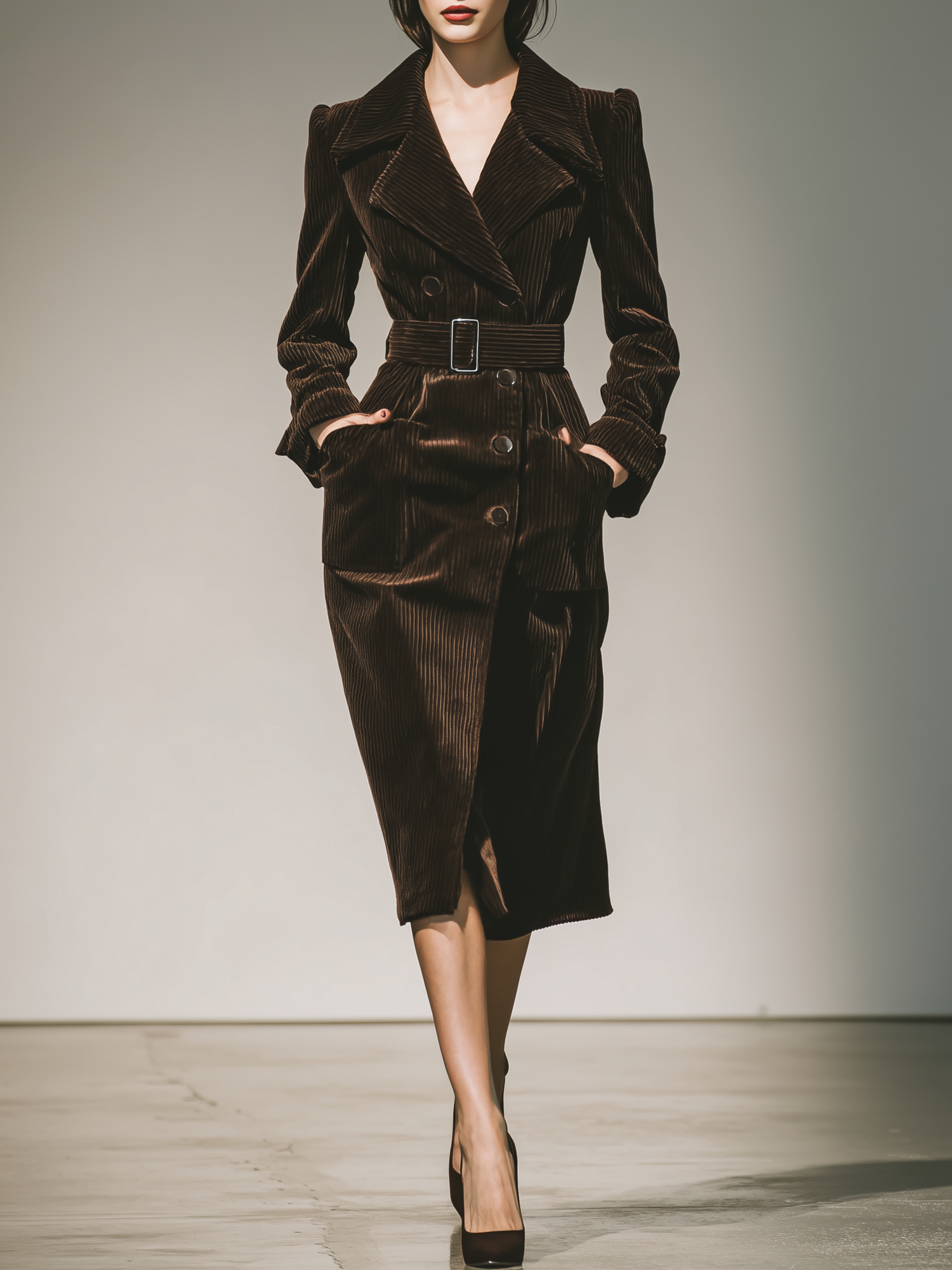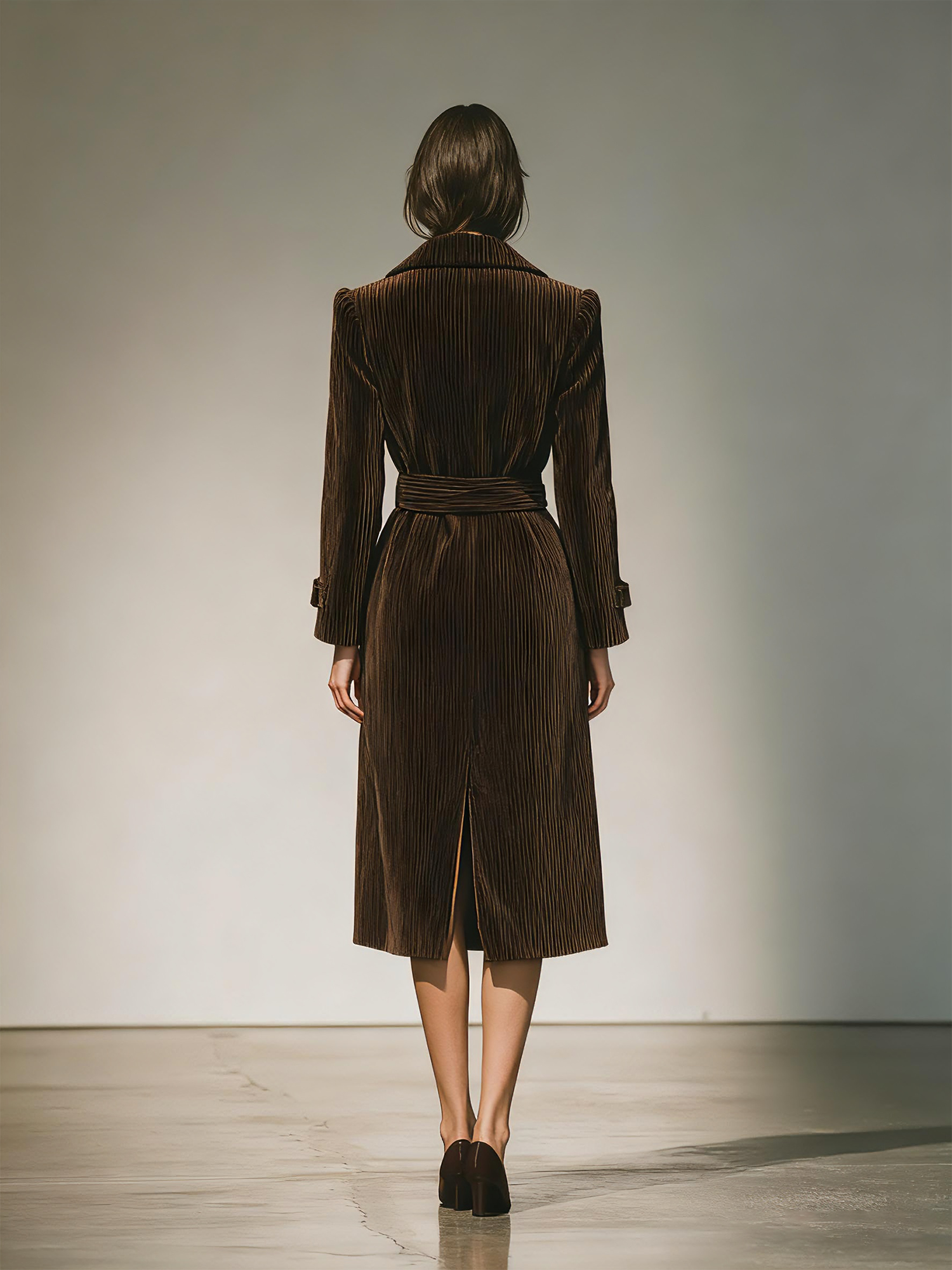 Women's Coffee-colored Corduroy Double-breasted Coat