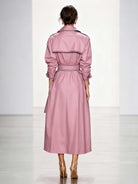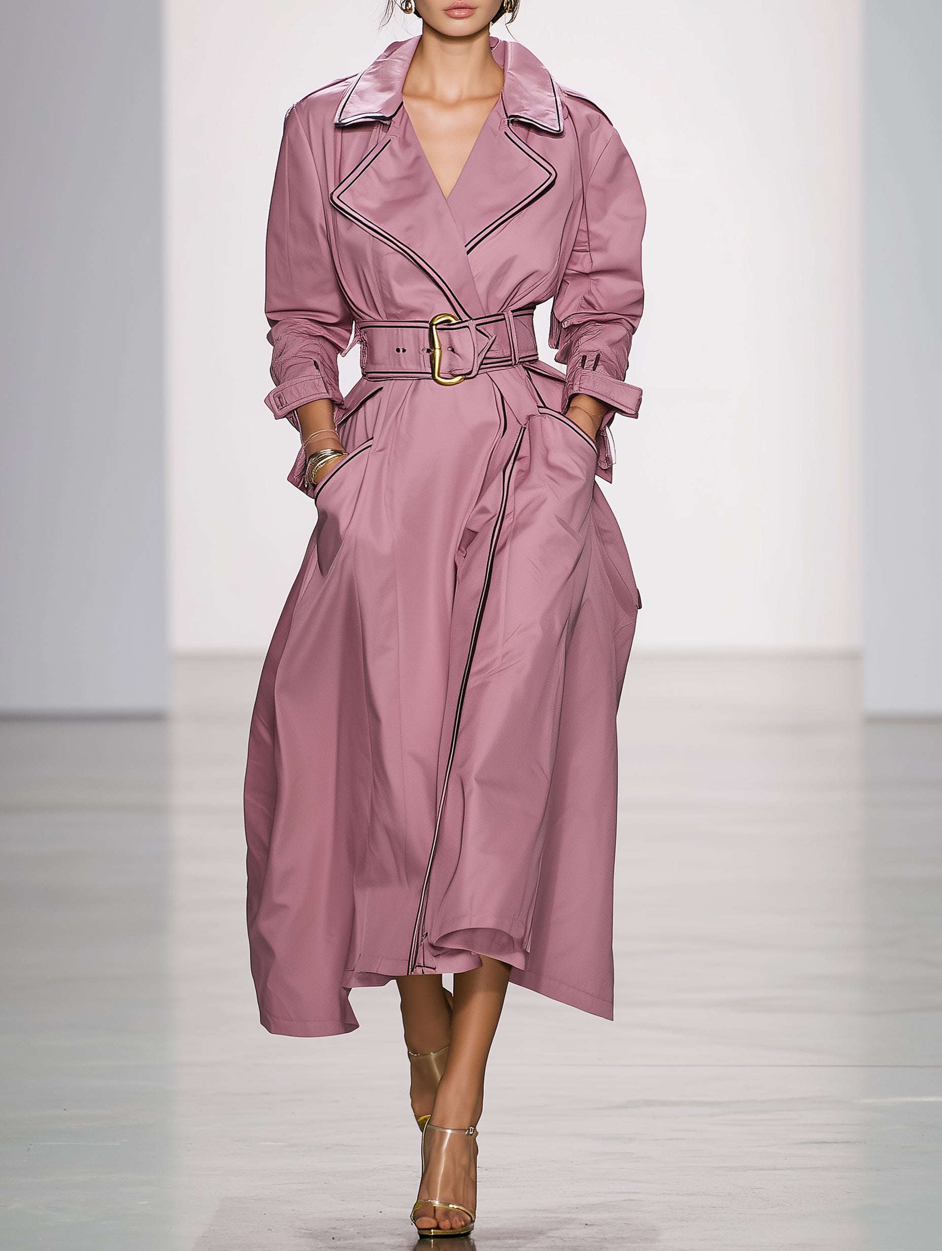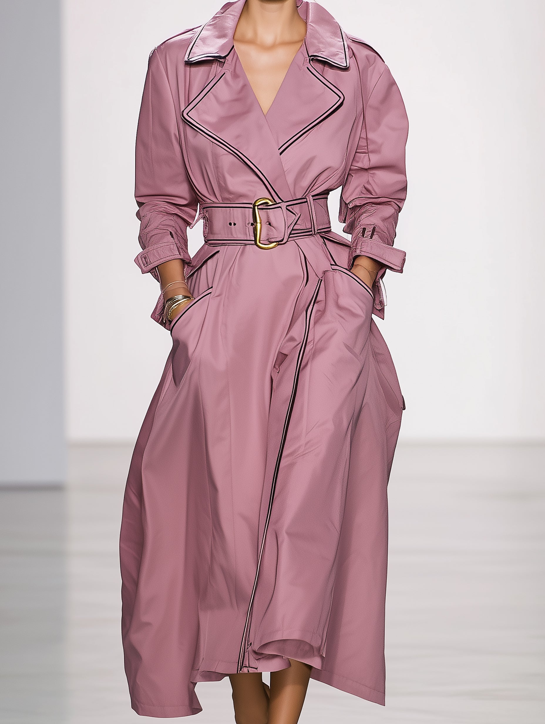 Women's Metallic Belt-embellished Color-blocked Trench Coat In Gray-pink Fashion.