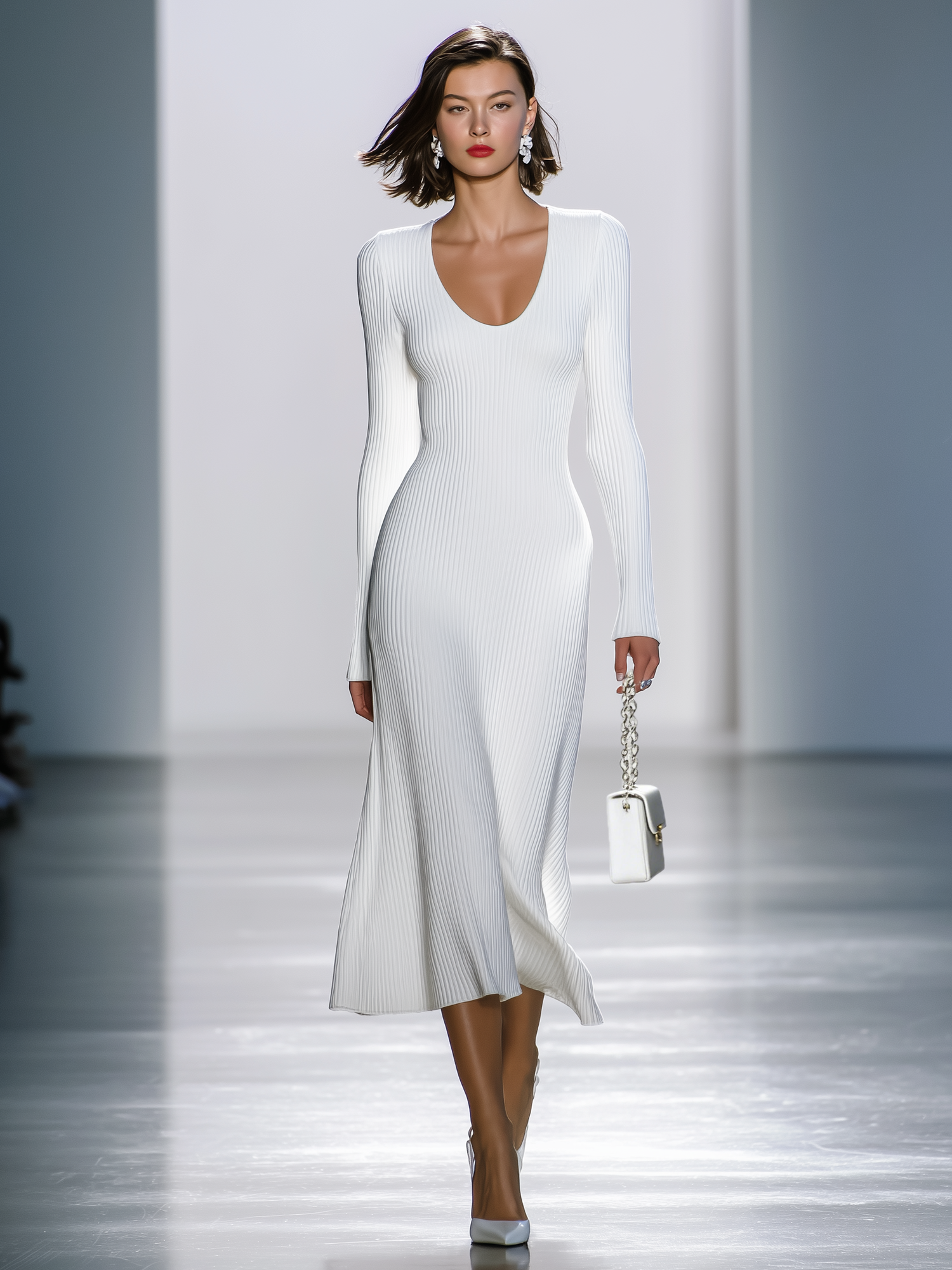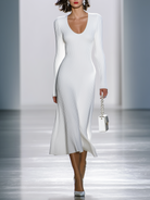 This Women's White V-neck Long-sleeved Slim-fit Knit Dress is a versatile addition to any wardrobe. Its elegant design, paired with comfort and style, makes it suitable for a variety of occasions, from casual outings to more formal events. Elevate your fashion game with this timeless piece.